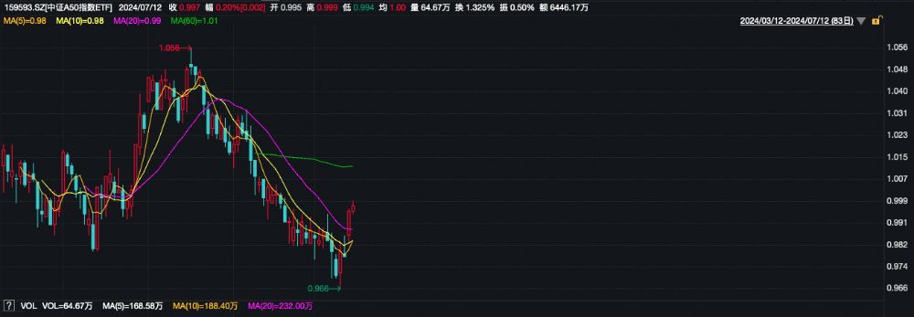 相关ETF方面,中证A50指数ETF(159593)现涨0.20%,成交额超6000万,换手率超1%,盘中交投活跃。