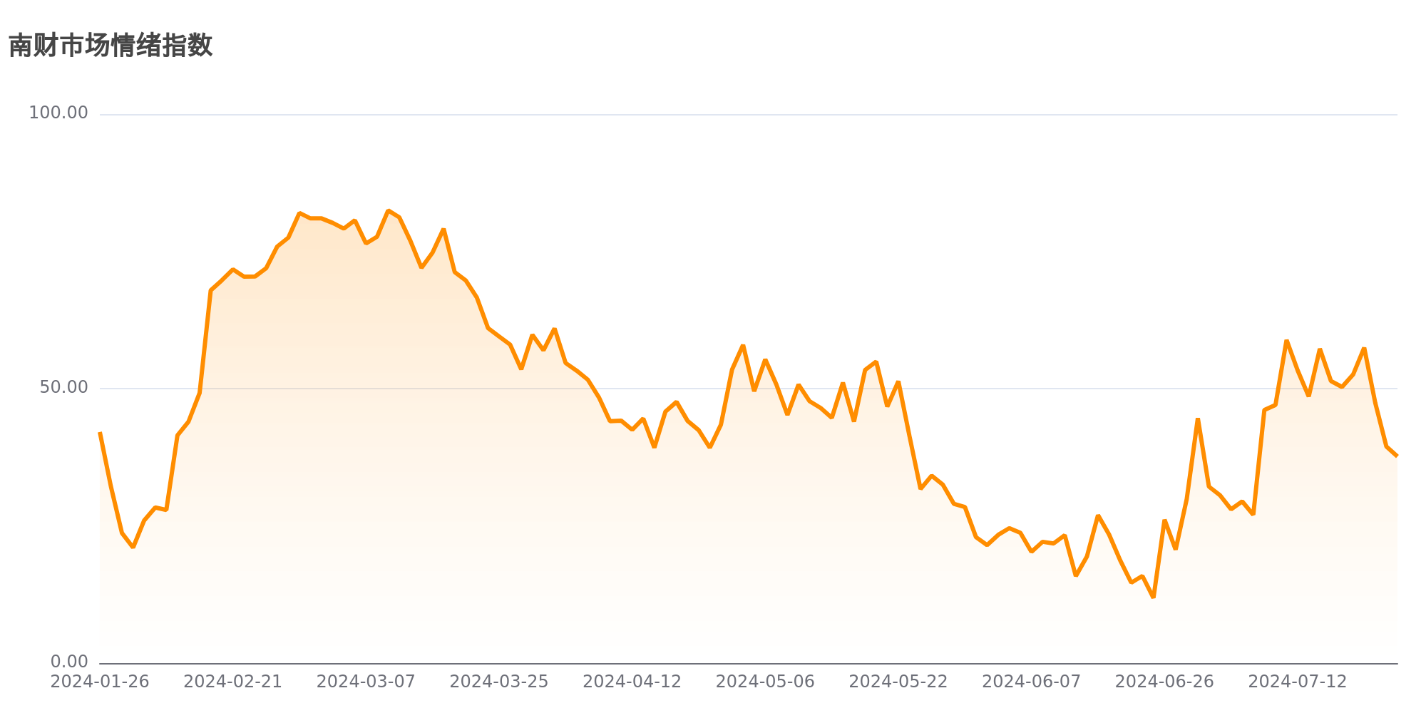 今日南财市场情绪指数为37.6,市场投资热度降低
