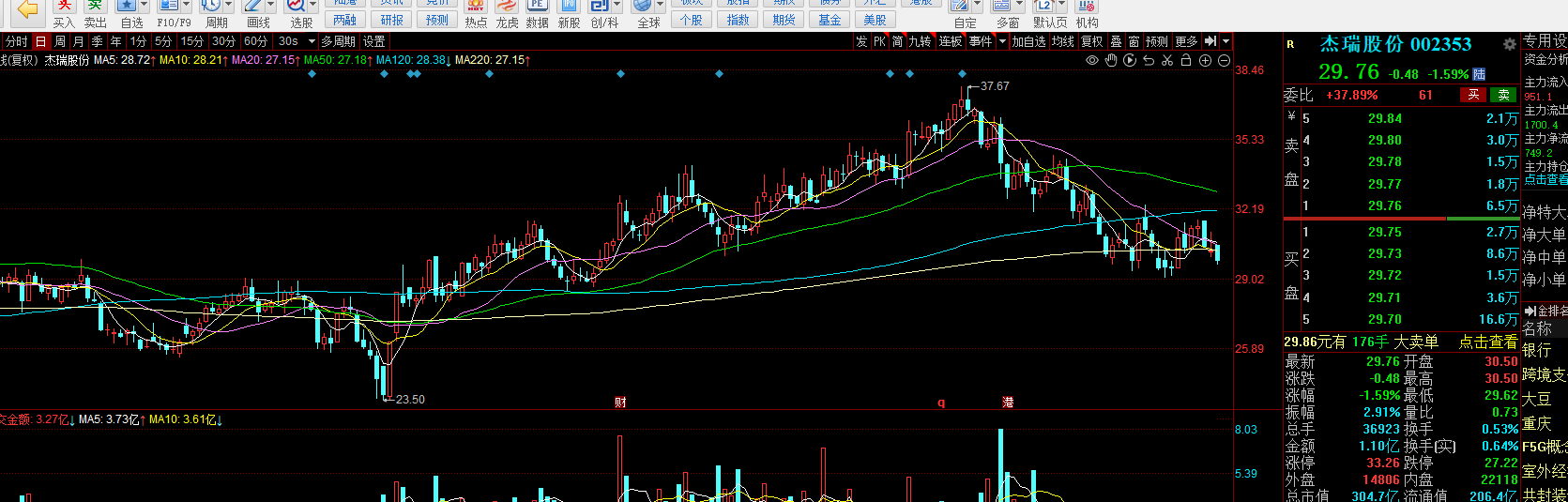 截至8月16日收盘,杰瑞股份跌1.59%,最新市值为304.7亿元。