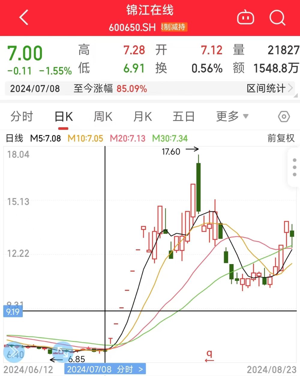 值得一提的是,锦江在线近期作为无人驾驶概念人气股备受瞩目。同花顺iFinD数据显示,自7月8日至8月23日收盘,该公司股价累计涨幅高达85.09%,期间十多次触及涨停板。