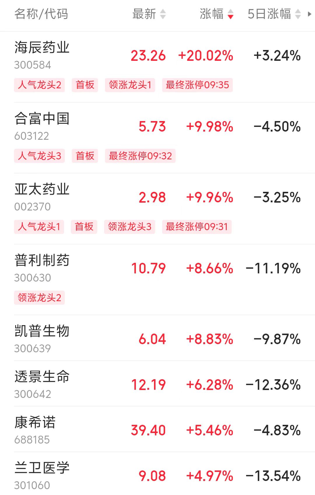 8月27日,猴痘概念早盘拉升,海辰药业(300584.SZ)20CM涨停,亚太药业(002370.SZ)、合富中国(603122.SH)10CM涨停,透景生命(300642.SZ)、拓新药业(301089.SZ)等跟涨。