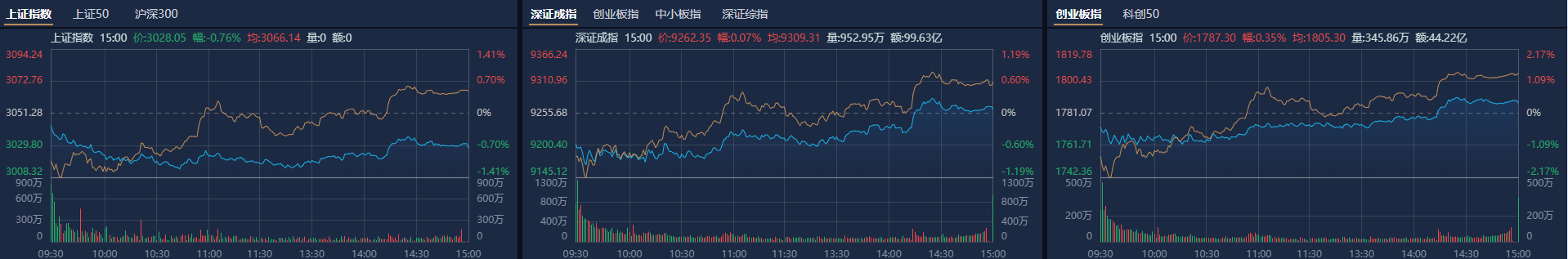 A股收评:创业板指探底回升涨0.35% 芯片股集体大涨