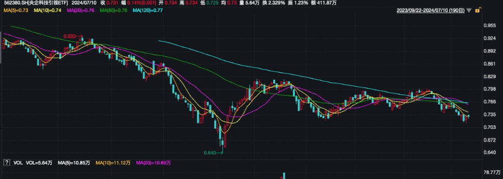 相关ETF中,央企科技引领ETF(562380)午后翻红,截至发稿涨0.14%,成交额超400万元,换手率超2%,溢折率0.04%,盘中频现溢价交易。
