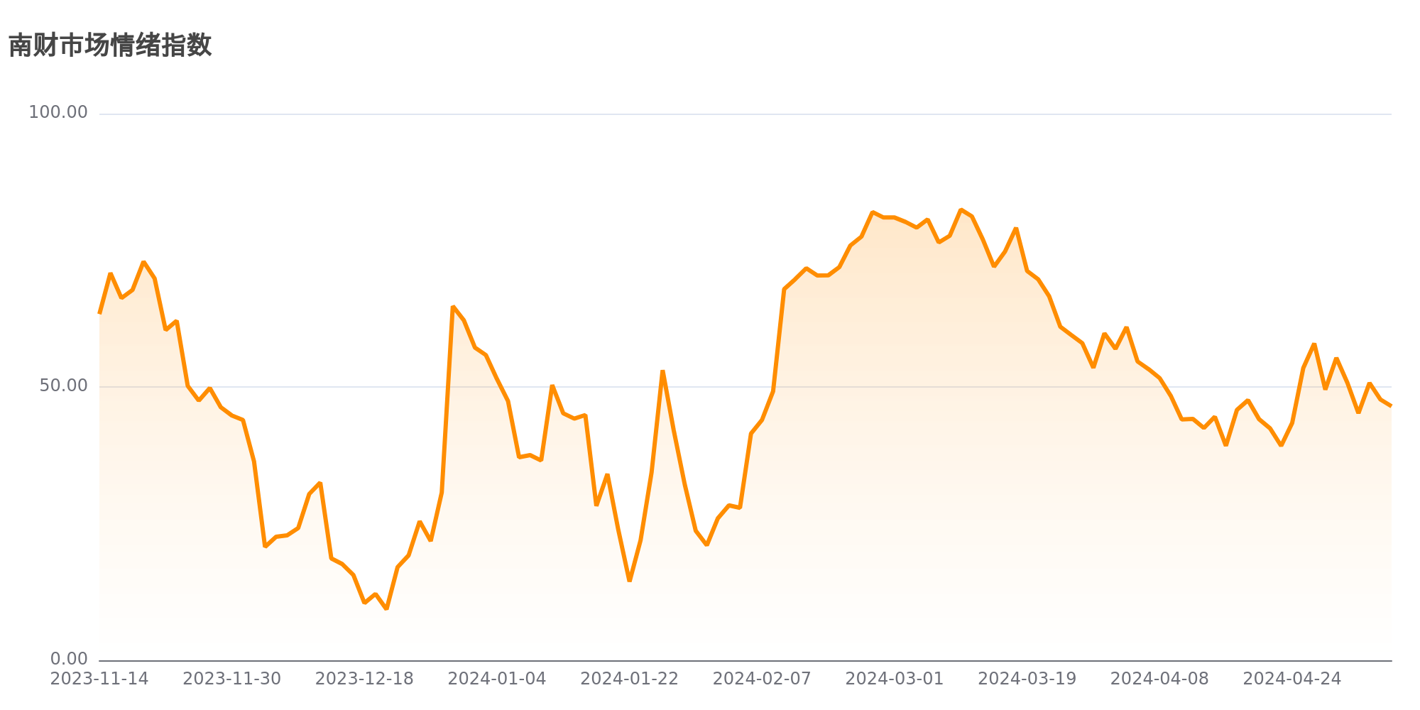 今日南财市场情绪指数为46.5,市场投资热度降低