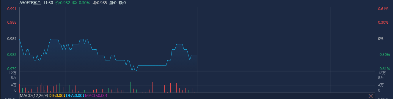 相关ETF方面,A50ETF基金(159592)截至早盘收盘下跌0.30%,成交额2.2亿元,换手率近9%,盘中交投活跃,溢折率0.13%,早盘频现溢价交易。