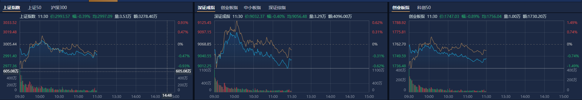 A股午评:沪指跌0.39%失守3000点 水利板块逆势走强